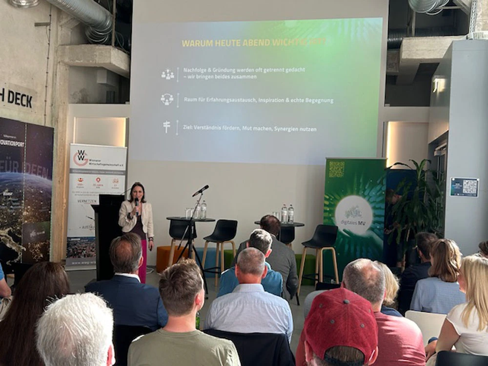 Der Netzwerkabend wurde gemeinsam von der Wismarer Wirtschaftsgemeinschaft e.V. und dem InnovationPort Wismar organisiert und durchgeführt. Beide Organisationen trugen maßgeblich zur Planung, Umsetzung und auch im kulinarischen Bereich zum Erfolg des Abends bei. Der offizielle Beginn wurde von Doreen Heydenbluth-Peters vom InnovationPort und Jörg Denecke, dem Vorstandsvorsitzenden der WWG, gestaltet. Damit wurde gleich zu Beginn deutlich gemacht: Unternehmensnachfolge sollte nicht isoliert betrachtet werden, sondern