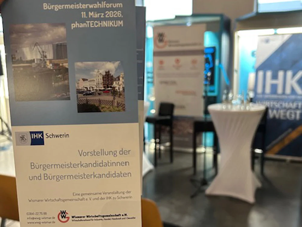 Auf Einladung der Wismarer Wirtschaftsgemeinschaft (WWG) gemeinsam mit der IHK zu Schwerin präsentierten sich am Mittwochabend, 11. März 2026,